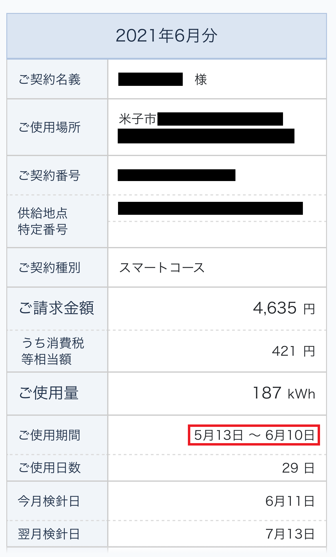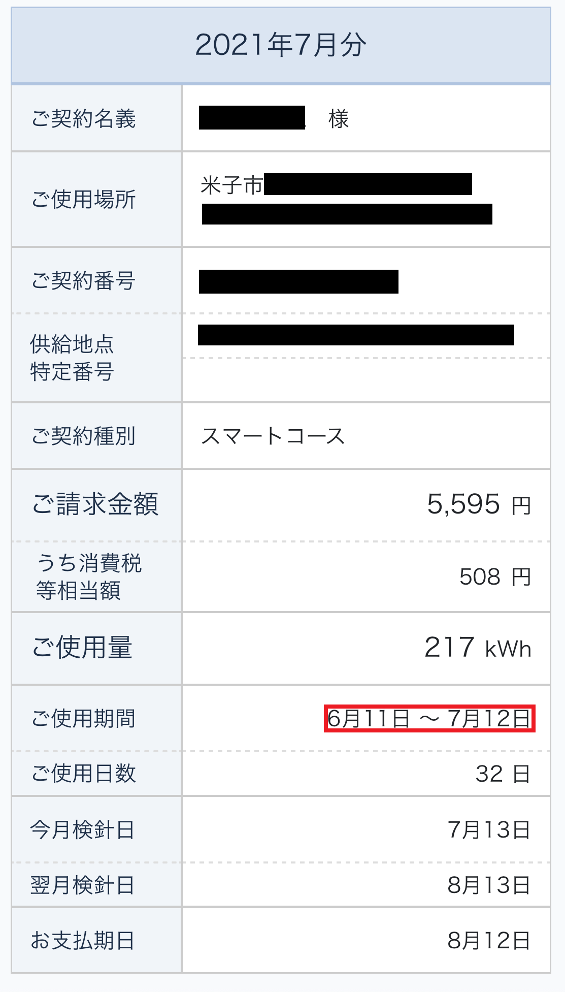 最初の月、電気料金がかなり不安だったけど届いた請求は7000円。